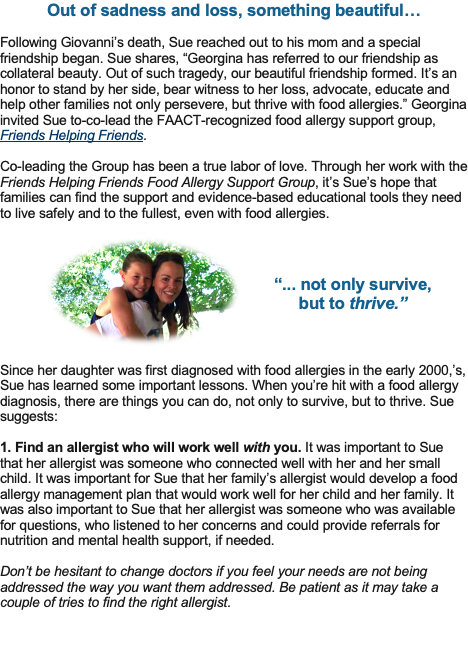 The Food Allergy Diagnosis: Grieve then Move Forward....Allergy Force recently caught up with Susan Kelly, BSN, RN, MPH Candidate